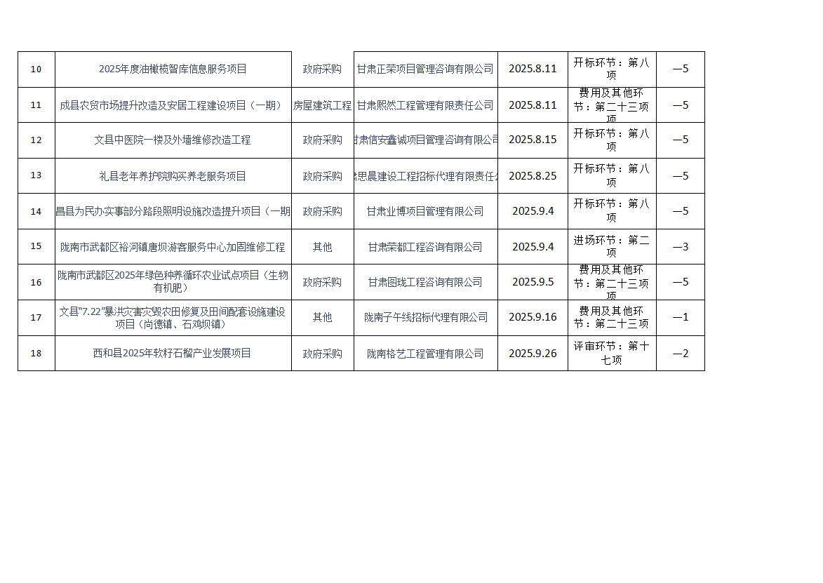 根據(jù)《隴南市公共資源交易中心代理機構進場行為誠信評價實施制度(試行)》規(guī)定,現(xiàn)對2025年第三季度共15家代理機構18條進場行為誠信評價記錄予以通報(詳見附表)。請各代理機構嚴格遵守各項規(guī)章制度、誠實守信,規(guī)范操作,為招標人和采購人提供專業(yè)、高效、規(guī)范的招標代理服務。