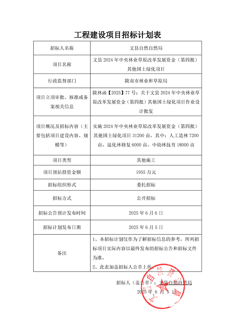 附件:文縣2024年中央林業(yè)草原改革發(fā)展資金(第四批)其他國土綠化項(xiàng)目招標(biāo)計(jì)劃表.pdf