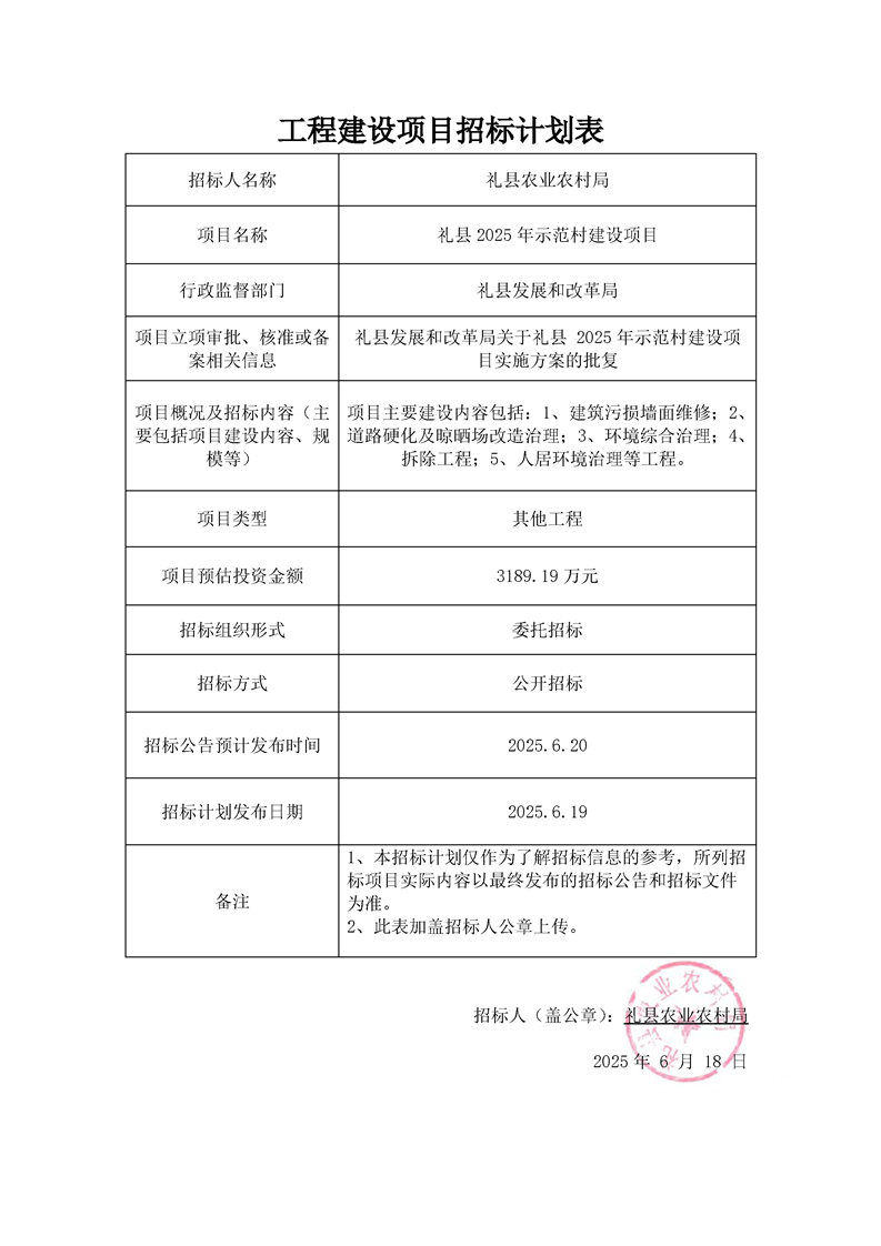 禮縣2025年示范村建設(shè)項(xiàng)目