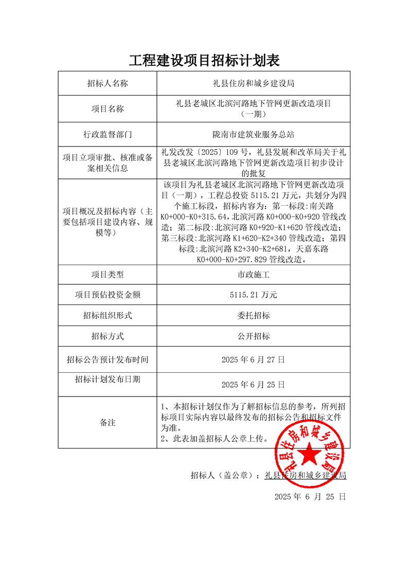 禮縣老城區(qū)北濱河路地下管網(wǎng)更新改造項目(一期)