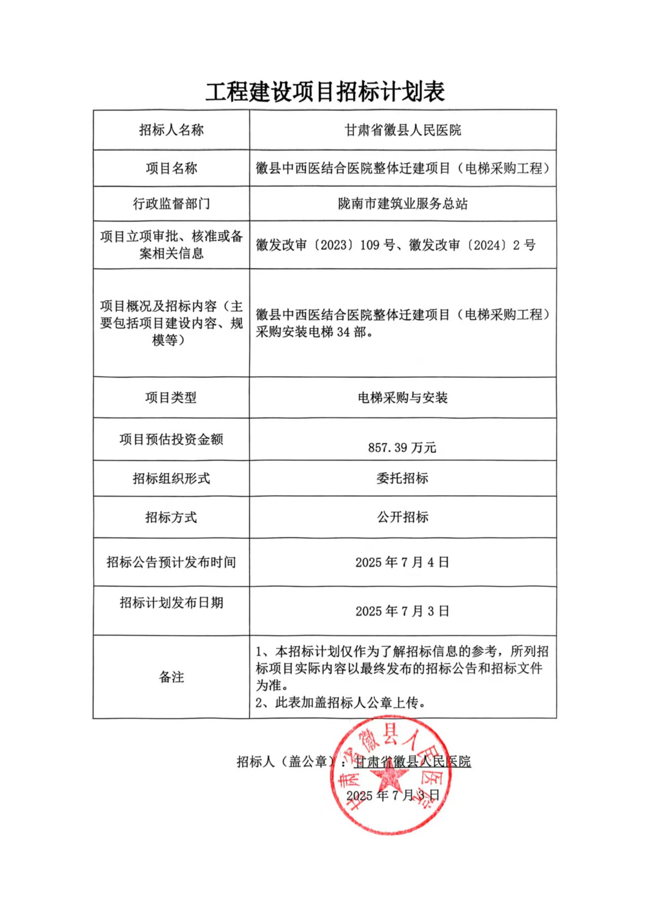 徽縣中西醫(yī)結(jié)合醫(yī)院整體遷建項目(電梯采購工程)