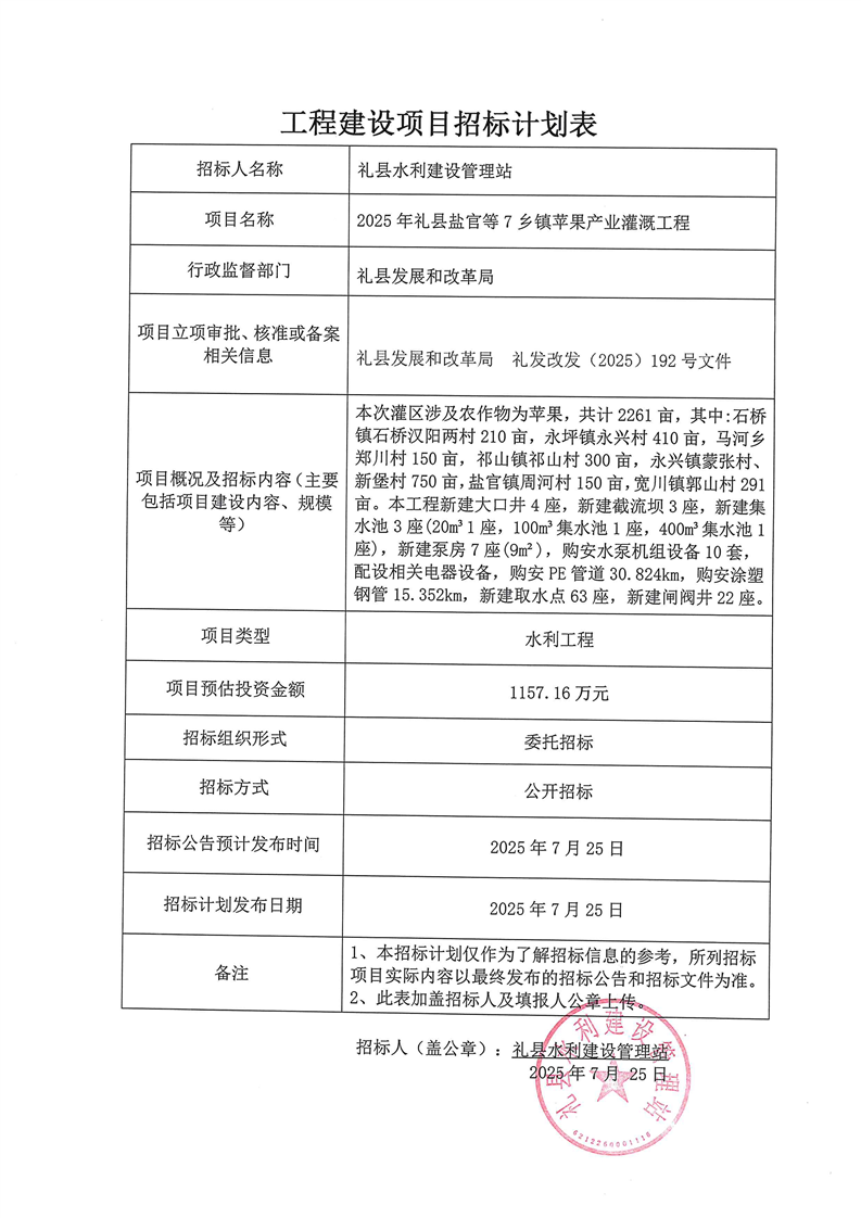 2025年禮縣鹽官等7鄉(xiāng)鎮(zhèn)蘋果產(chǎn)業(yè)灌溉工程