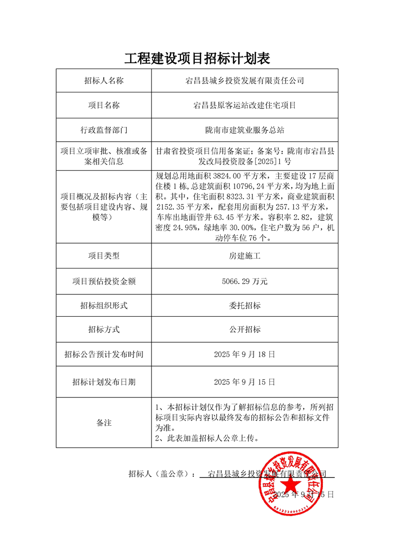 宕昌縣原客運(yùn)站改建住宅項(xiàng)目