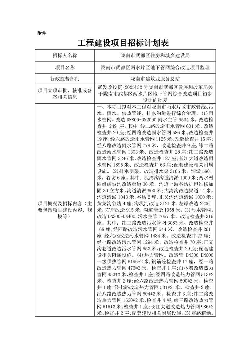 隴南市武都區(qū)兩水片區(qū)地下管網綜合改造項目監(jiān)理