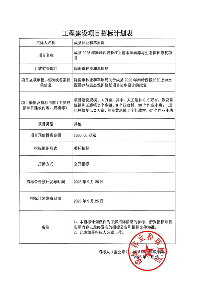 成縣2025年秦嶺西段長江上游水源涵養(yǎng)與生態(tài)保護(hù)修復(fù)項(xiàng)目