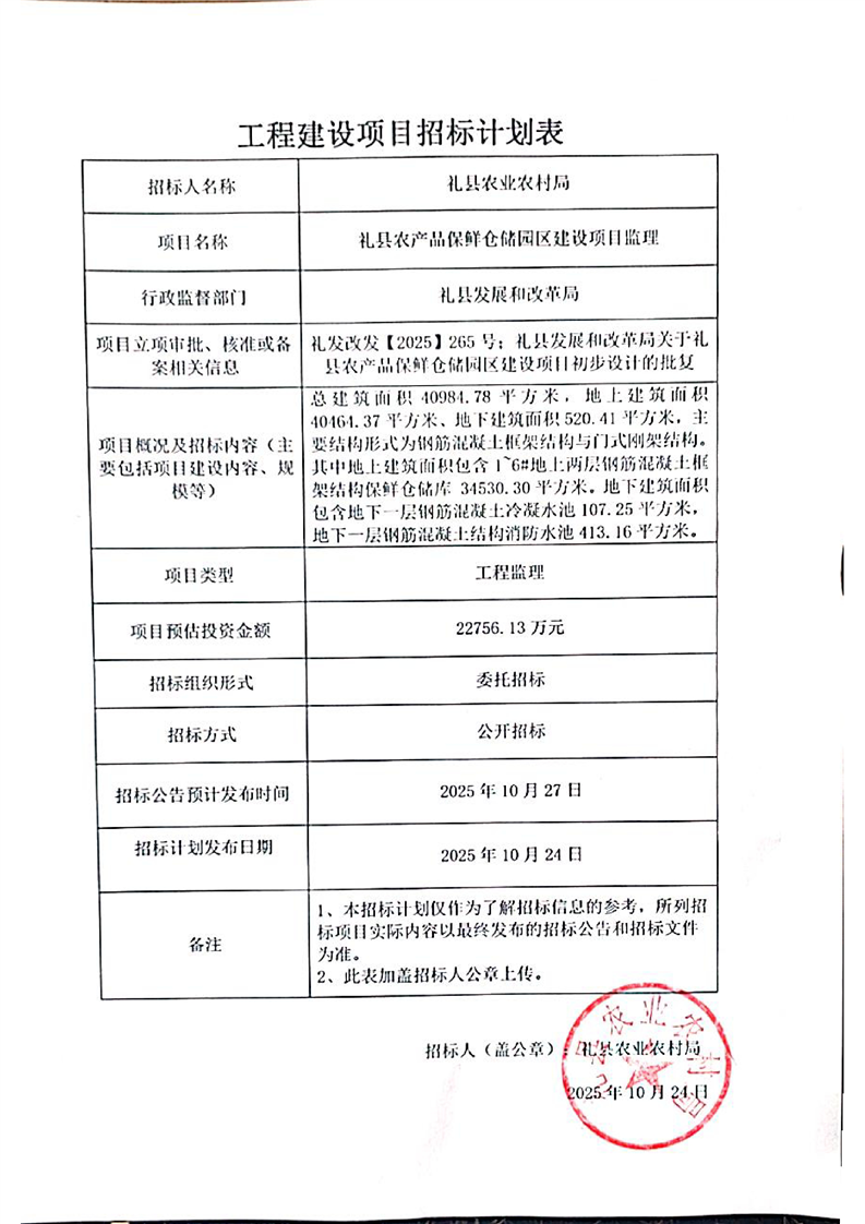 禮縣農產(chǎn)品保鮮倉儲園區(qū)建設項目監(jiān)理