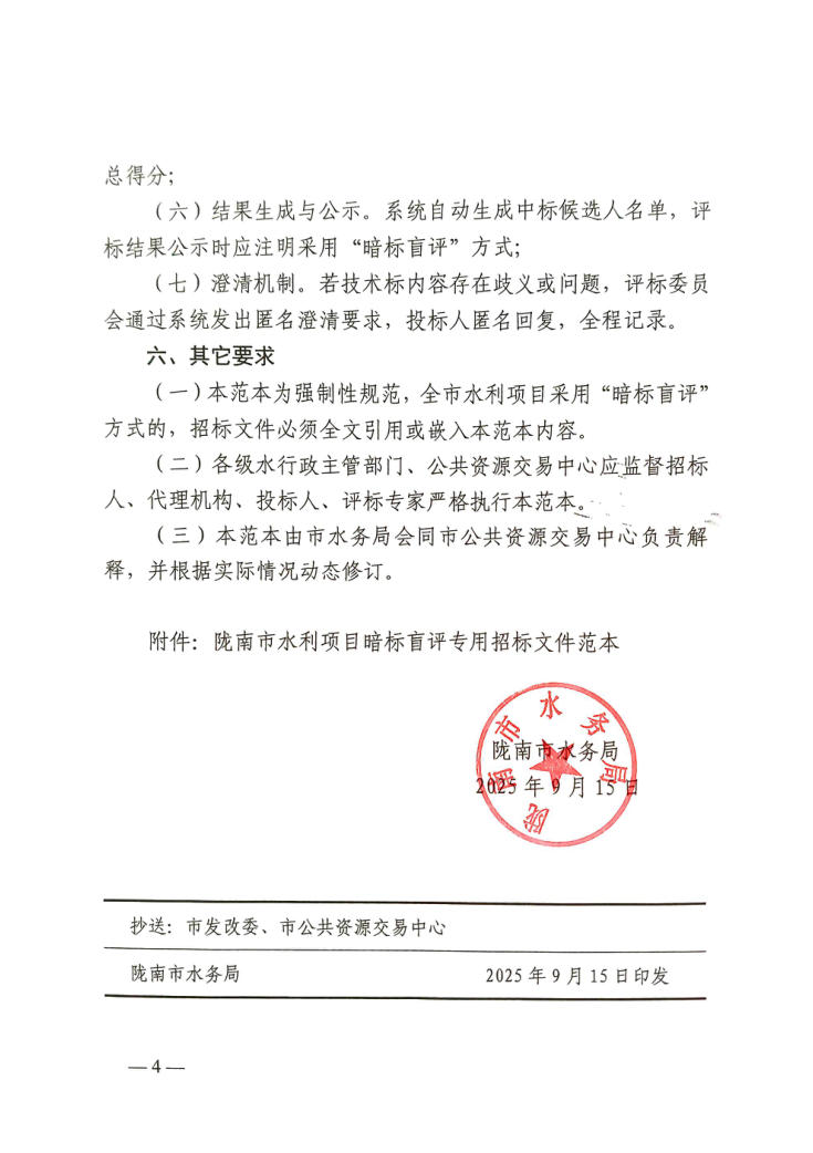 附件:附件:隴南市水利項目盲標暗評專用招標文件范本(1).pdf 附件:水利類-材料采購模板.docx 附件:水利類-監(jiān)理模板.docx 附件:水利類-設(shè)計模板.docx 附件:水利類-施工模板.docx